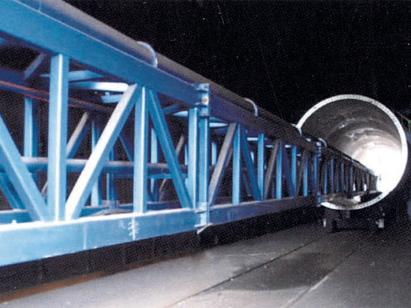 8、按吊車控制盒"右"按鈕、將吊桿移至*右側。當?shù)鯒U進入鋼管拋丸機時應放慢移動速度并注意吊桿是否對準槽口。
